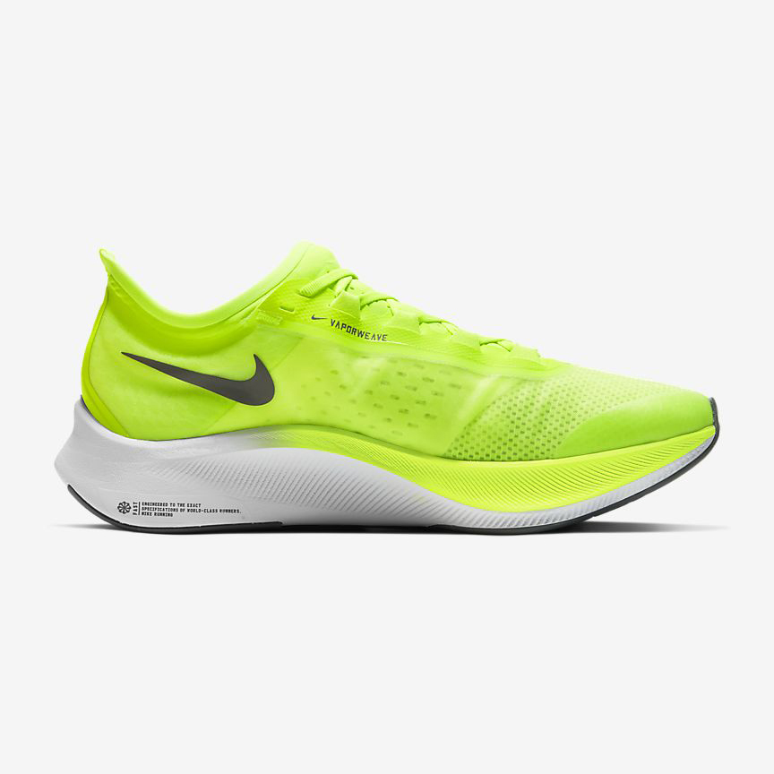 The Nike Zoom Fly 3 is the fast you’ve never seen—or felt—before. By combining our two most innovative technologies, Nike ZoomX foam and VaporWeave material, it’s the fastest shoe we’ve ever made. Scroll down to learn more about the future of racing shoes.